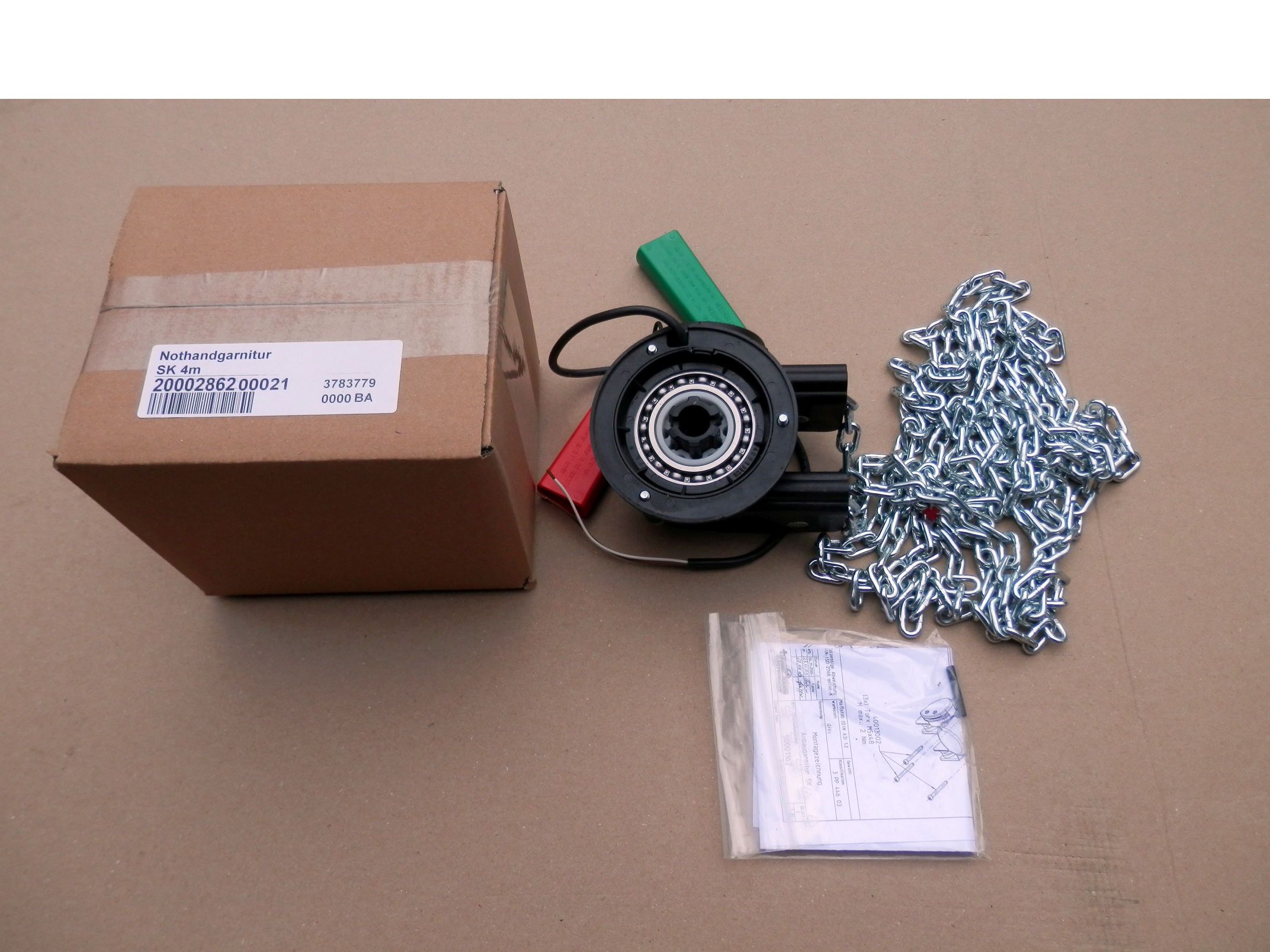Awaryjny napęd ręczny SK do napędów GFA ELEKTROMATEN / Wiśniowski / Krispol serii SE . W komplecie linki rozryglowujace, łańcuch 4m. Przekładnia 1:1.