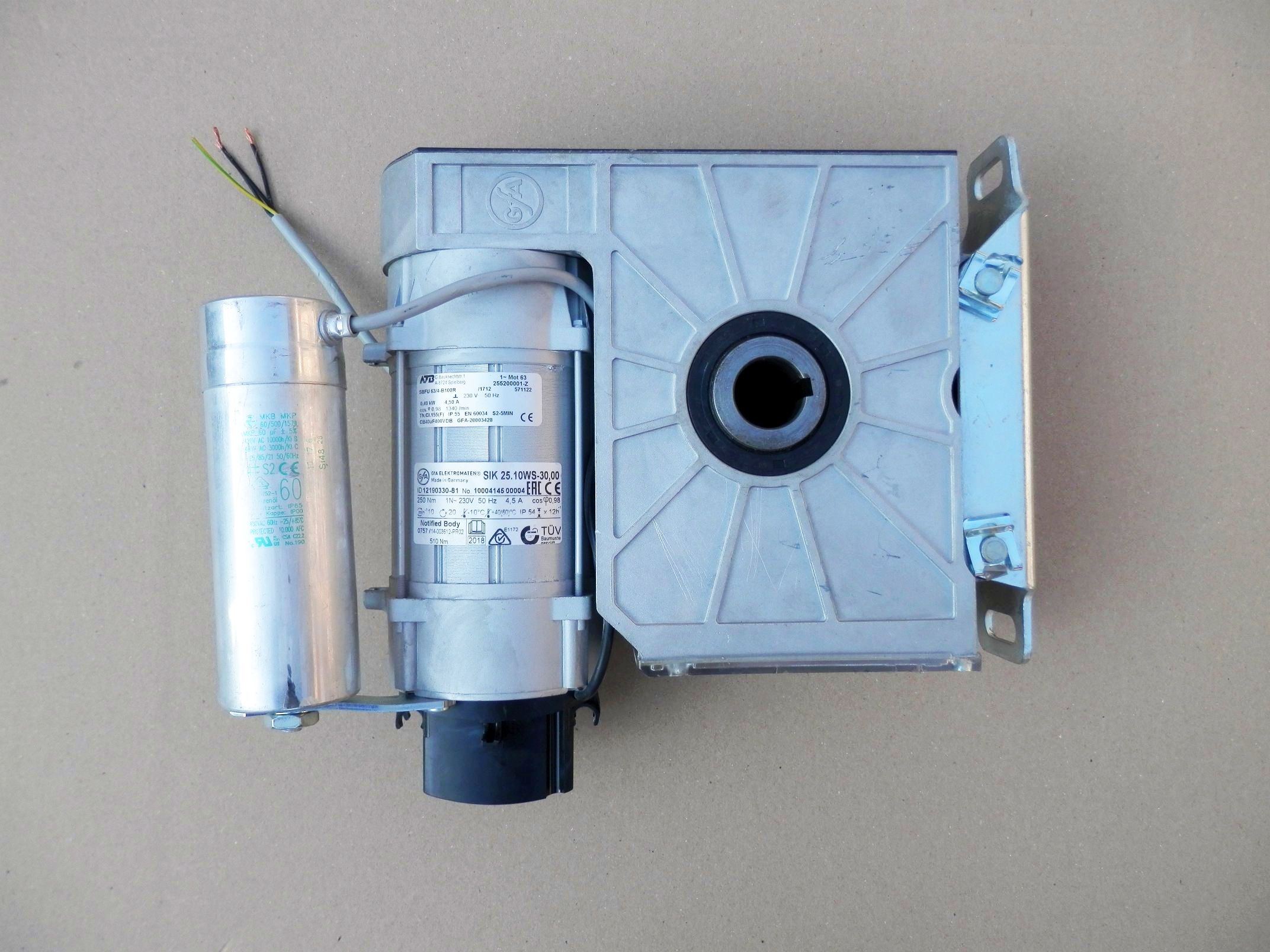 Napęd bramy rolowanej GFA ELEKTROMATEN SIK 25.10WS-30,00, w bardzo dobrym stanie. Przystosowany do wału o średnicy 30mm. Zasilany jest napięciem 230V.